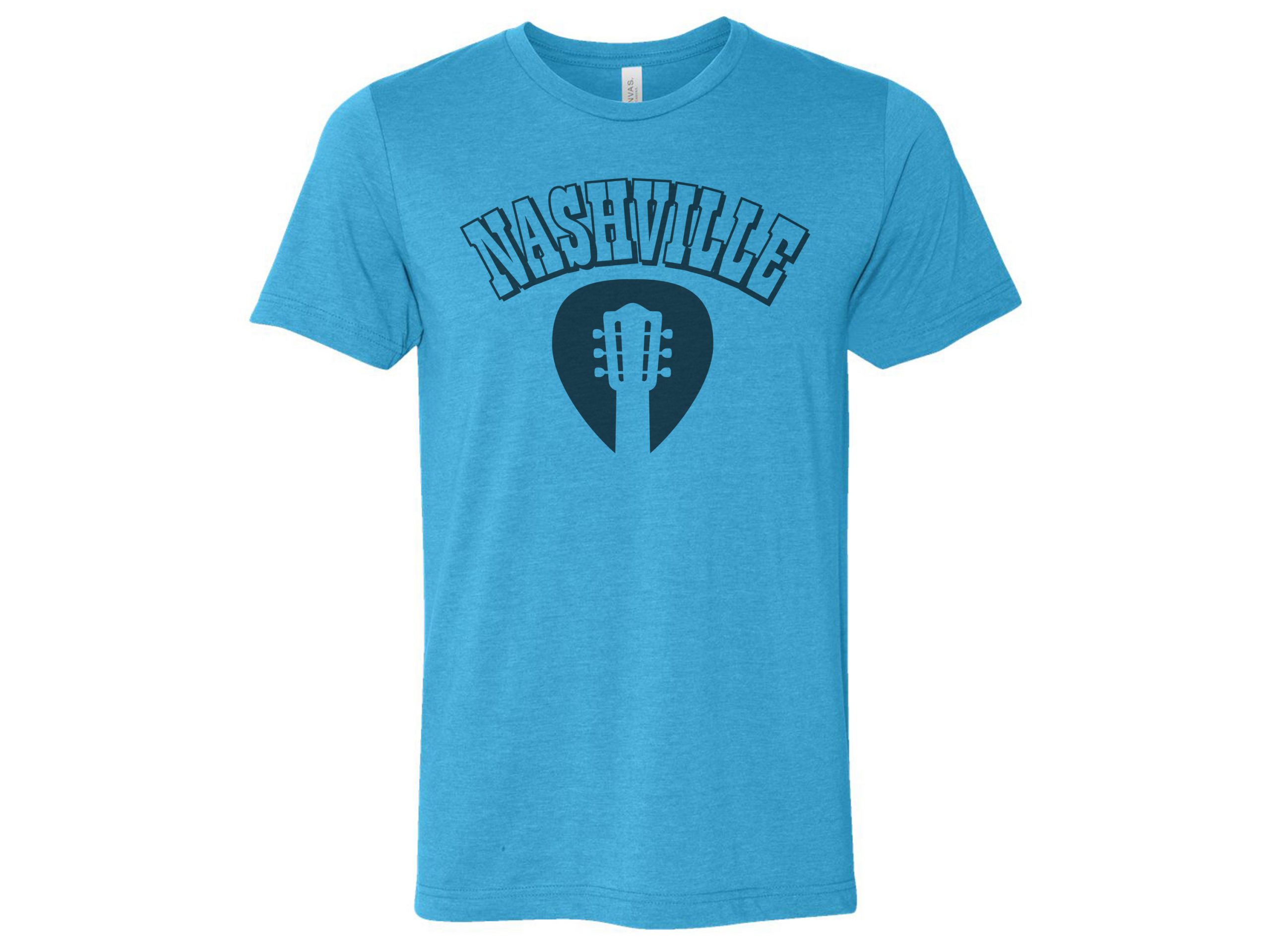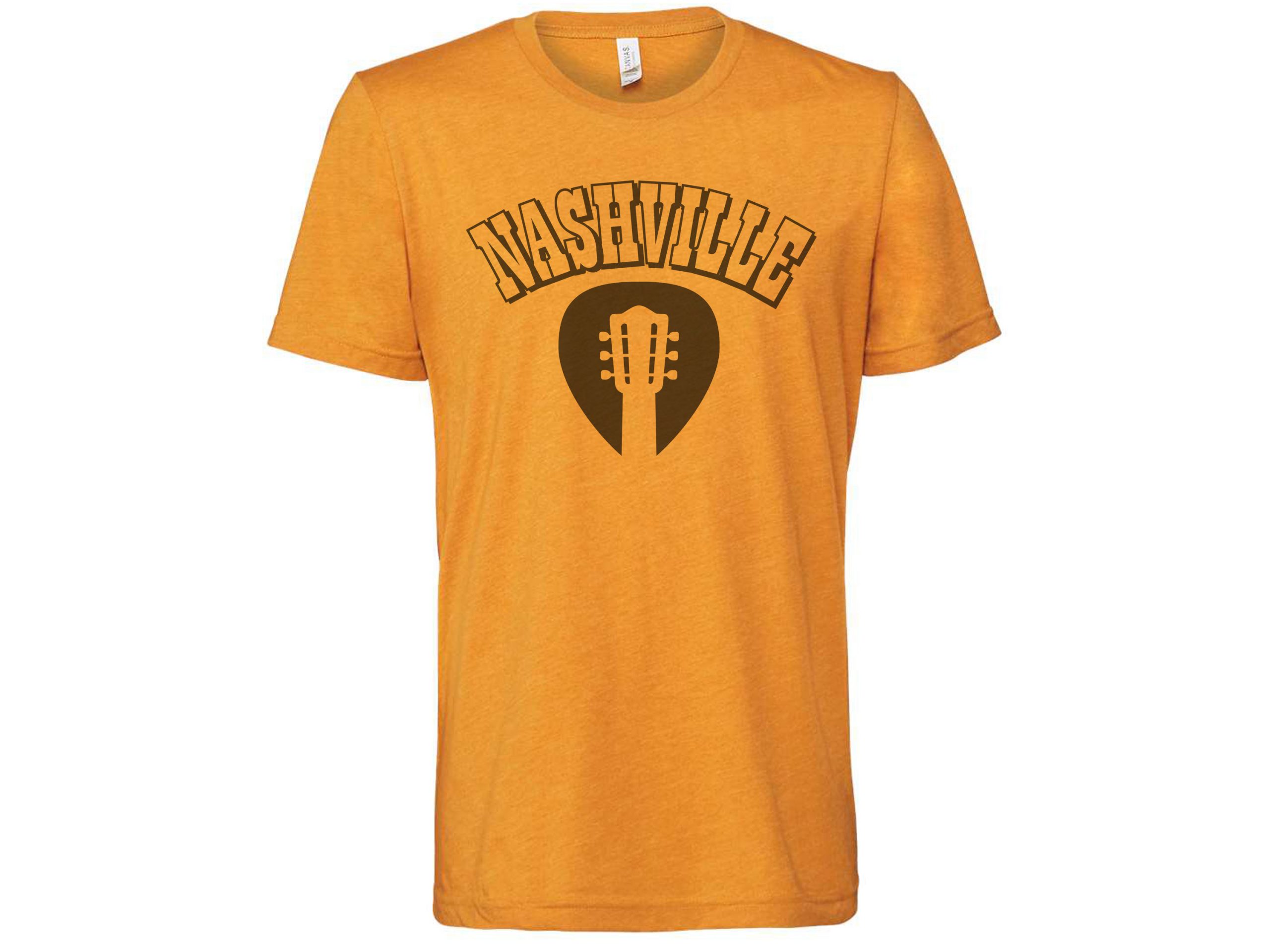 A bold Nashville design featuring a guitar pick shape with a clean headstock silhouette. Simple, high-contrast, and built around the roots of country music. An easy, everyday piece that represents Music City without overdoing it.